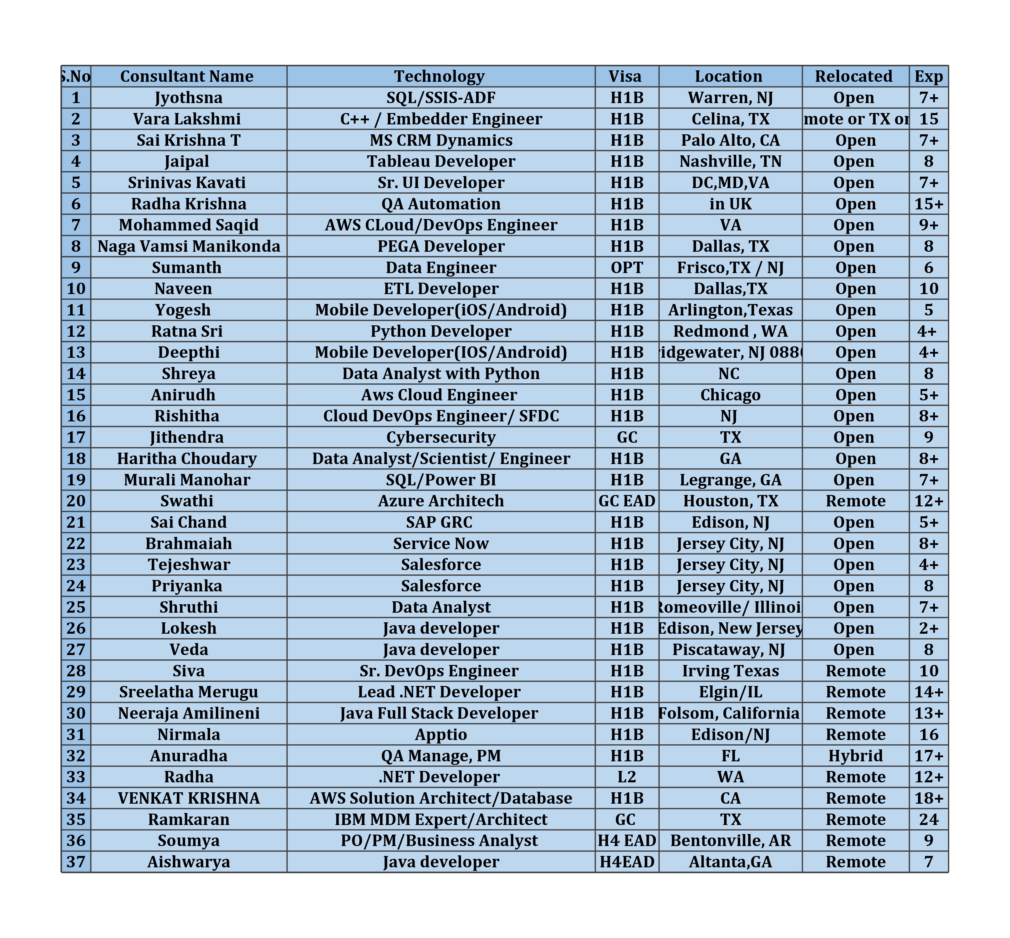 http://bit.ly/4ey8w48 https://jobs.nvoids.com/job_details.jsp?id=2242025&uid= Hi, I hope you are doing great! This is Henry from Binary Computer Int'l Corp I do have a consultant on my bench looking for an immediate project. Please find the below Updated Hotlist and let me know if you have any suitable requirements on C2C Name: Mohammed AbdulSaqib Experience: 9+ Visa Status: Location: Virginia (Relocated Anywhere in US) Role: AWS Cloud/DevOps Engineer Name: JITHENDRA Experience: 9+ Visa Status: Location: Denton , Texas Relocated Anywhere in US) Role: Sr. Cyber Security Analyst Name: Ram Karan Experience: 24+ Visa Status: Location: Frisco, Texas Relocated Anywhere in US) Role: MDM Developer / AI / ML Name: Vara Lakshmi Chigurupati Experience: 15+ Visa Status: Location: Celina, TX (Relocated Anywhere in US) Role: Embedder Engineer Thanks & Regards Henry SR. Technical Recruiter / Bench Sales 50 Cragwood Road, Suite 209, South Plainfield, NJ 07080 Email Id: [email protected] LinkedIn: linkedin.com/in/mohd-fahad-henry-b4bb95251 Office: 732 913 8429 Phone no: 9160443404 "Best way to reach me is by email" From: [email protected] <[email protected]> on behalf of Aaric <[email protected]> Sent: Saturday, March 8, 2025 6:02 PM To: [email protected] <[email protected]>; [email protected] <[email protected]>; [email protected] <[email protected]>; [email protected] <[email protected]>; [email protected] <[email protected]>; [email protected] <[email protected]>; IT Staffing Day to Day Requirement & Hotlist <[email protected]>; [email protected] <[email protected]>; [email protected] <[email protected]>; [email protected] <[email protected]>; [email protected] <[email protected]>; [email protected] <[email protected]>; [email protected] <[email protected]>; [email protected] <[email protected]>; [email protected] <[email protected]>; [email protected] <[email protected]>; [email protected] <[email protected]>; [email protected] <[email protected]>; [email protected] <[email protected]>; [email protected] <[email protected]>; [email protected] <[email protected]>; [email protected] <[email protected]>; [email protected] <[email protected]>; [email protected] <[email protected]>; [email protected] <[email protected]>; [email protected] <[email protected]>; [email protected] <[email protected]>; [email protected] <[email protected]>; [email protected] <[email protected]>; [email protected] <[email protected]>; [email protected] <[email protected]>; [email protected] <[email protected]>; [email protected] <[email protected]>; [email protected] <[email protected]>; [email protected] <[email protected]> Subject: Request for joining Google group Dear Group Admin, I hope you're doing well. My name is Aaric, and Im a trainee Bench Sales Recruiter eager to learn and connect with industry professionals. I would love to join your group to gain insights, share opportunities, and collaborate with fellow recruiters. Please let me know the next steps. Looking forward to being part of the community! Best regards, Aaric [email protected] -- To view this discussion visit -- Keywords: artificial intelligence machine learning information technology card Idaho New Jersey Texas Request for joining Google group [email protected] hotlist http://bit.ly/4ey8w48 https://jobs.nvoids.com/job_details.jsp?id=2242025&uid= |